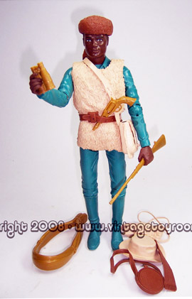 Marx also made more western type figures. These included: Chief Red Cloud Indian, Dusty Slade Cowboy, and Johnny Kolt Cowboy. To my knowledge they were never paired with horses, though some other vintage horses made by Marx would work. Some of these figures were also produced in Mexico. Mexican versions are in different colors. I have a blue Chief Red Cloud, and a White Johnny Kolt shown for reference in the illustration guide. Mexico made the accessories out of poly-plastic verses U.S. that used soft vinyl. Many of the original U.S. made caramel figures are not easily found because of breakage. Like Caramel 12" figures they break at the joints like glass. Mexican versions may be your only hope of finding them intact with some accessories.