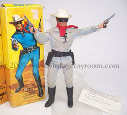 The Lone Ranger Legend lives on with Marx in Europe. Most Gabriel/Hubley figures and accessories were produced in the UK under the Marx name. To my knowledge there are 8 figures and four horses. All figures had articulation, and were nude style bodies with a full set of removable clothing. The main figures consisted of The Lone Ranger, Tonto, and Butch Cavendish. The lone Ranger was dressed in blue and masked, with a white hat, red bandana, and a holster with two pistols with white markings on the stocks. Tonto, the Lone Rangers partner, was an Indian dressed in a tan fringe outfit, moccasins, a yellow headband with a feather, and a holster with pistols. Butch Cavendish the villain had black pants, black shirt, black and white checkered vest, black hat, black bandana, holster and pistols. Red Sleeves was an Apache Indian and the Lone Rangers enemy. He mainly consisted of a tan outfit with a red shirt with sleeves showing. The U.K. version had a special thumb for shooting arrows. He came with a quiver, three arrows, and a bow. Marx also sold an Indian boy called Little Bear. He was clothed in tan, and came with a scaled eagle to perch on his arm. Moving on to some other characters, a boy, Danny Reid was produced. He was about the same size as Little Bear, and came with a Cowboy outfit and a tan rifle. Lastly Europe had a few exclusives. The first was called Sheriff Tex Dawson. He came with a white shirt with a metal sheriff's star on it, holster with pistols, rifle, and a set of handcuffs. Lastly, the hardest figure for me to locate which is also an U.K. exclusive, the Villain El Lobo. He came with a red style Spanish hat, poncho (serape') and was dressed mainly in black. From what I have seen first hand as well as heard from other collectors, the clothing quality lacks in the European issues. I literally had a Butch Cavendish outfit disintegrate before my eyes when I removed it from the Blister Card! The fabric cracks, tears and flakes right to pieces into dust. To move on to the horses, the first horse, Silver was designed for The Lone Ranger. He was all white with black tack. Some special combo's had action saddles for special poses and tricks. Silver had full articulation. The next horse, Scout, was Tonto's horse. Scout was mainly white with tan / light brown spotting. He came with brown soft vinyl tack. The last full size horse was Bandit. He was black with taupe colored tack. Lastly, Gabriel produced a horse called Banjo. I am not sure if Marx U.K. made this one but I liked it, so put it in this guide. Banjo was a light cream to palomino colored smaller horse, with partial leg articulation. He was designed for Dan Reid. Prices of Lone Ranger figures and accessories are on the rise today. Most vintage Lone Ranger items I have found are dated around the 1973-1976 era. If you like Lone Ranger, now is the time to buy. Old store stock is out there and still semi affordable as far as vintage stuff goes. On average, Carded or boxed figures sell for around $70. The HTF figures like Tex Dawson or El Lobo can run double. The reason being is that they were U.K. Marx exclusive(s).