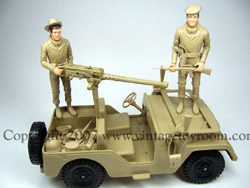 Marx also produced another set based on the TV show called "Rat Patrol". Besides the sought after Desert patrol Jeep, this set contained (2) figures, Sgt. Sam Troy and Sgt. Jack Moffitt. The figures were uniquely molded in desert tan poly-plastic, and came with the same sets of tan soft vinyl accessories. The Jeep was made of HP and had a set of HP weapons. Any of these figures are HTF and are a higher end Marx piece. To my knowledge there are no reissues or Mexican versions of the Rat Patrol figures, though nothing would surprise me.